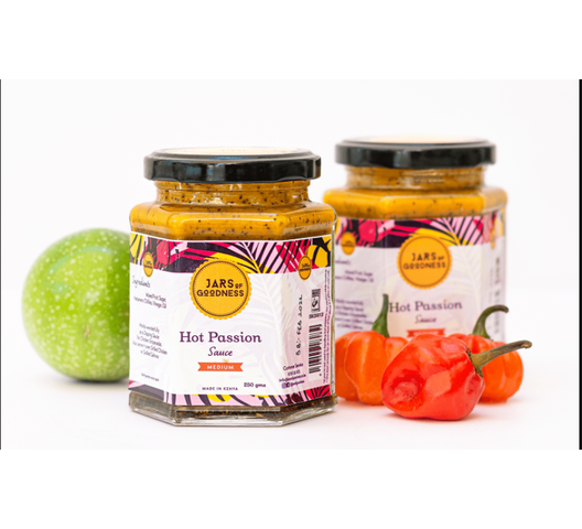 Locally farmed scotch bonnet chillies and passionfruit fresh from the vine deliver sweet heat in Jars of Goodness Hot Passion Sauce. This hot sauce delivers mild-medium heat that’s delicious on meats, pizzas, as a marinade, and even swirled into vanilla ice cream (yes, you read that correctly)! Few things in life taste as delicious as fresh Kenyan passionfruit and we’re confident you’ll love our Hot Passion Sauce just as much